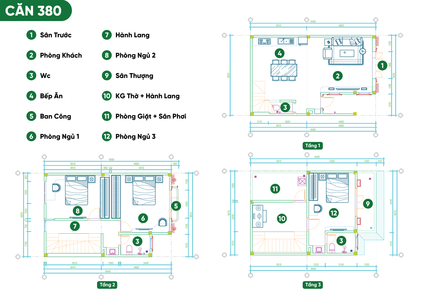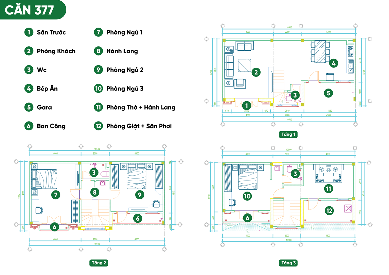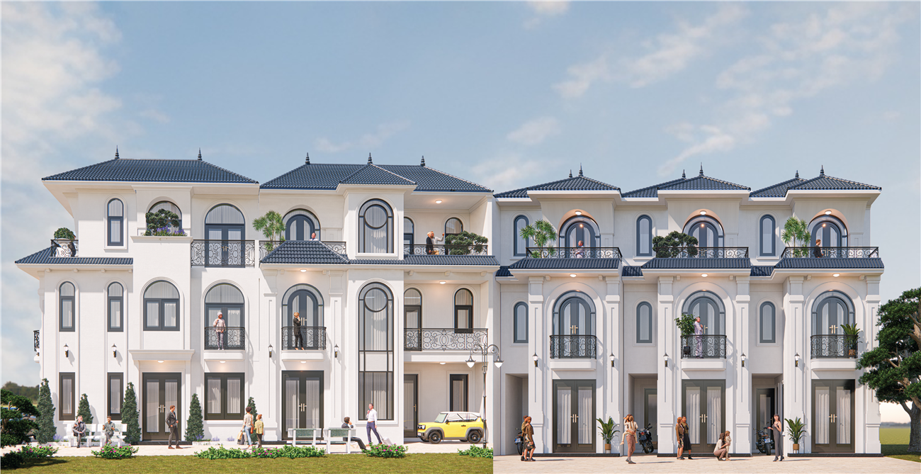 • QUY MÔ 08 căn nhà phố Địa Trung Hải – 3 tầng + 1 tum mái