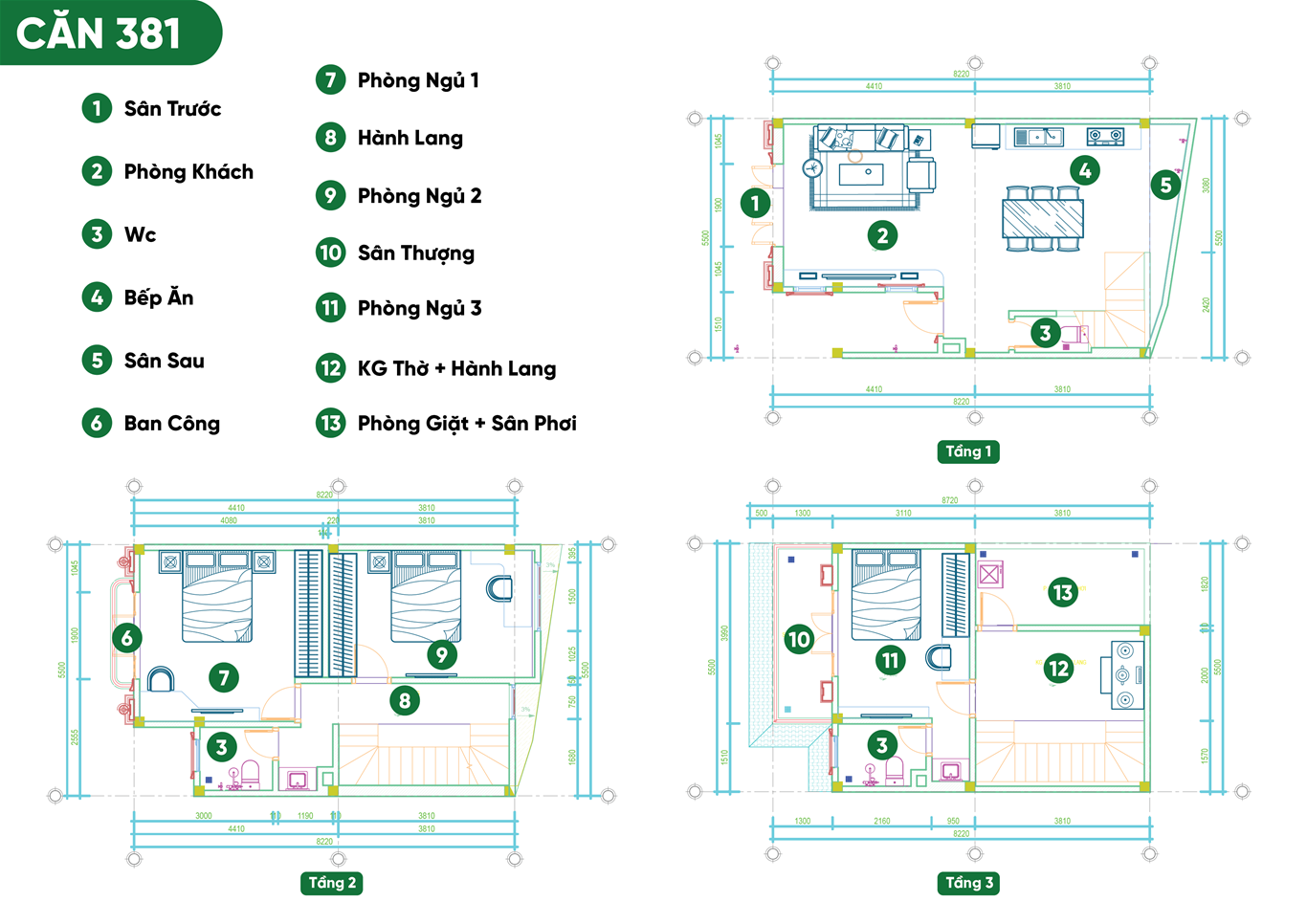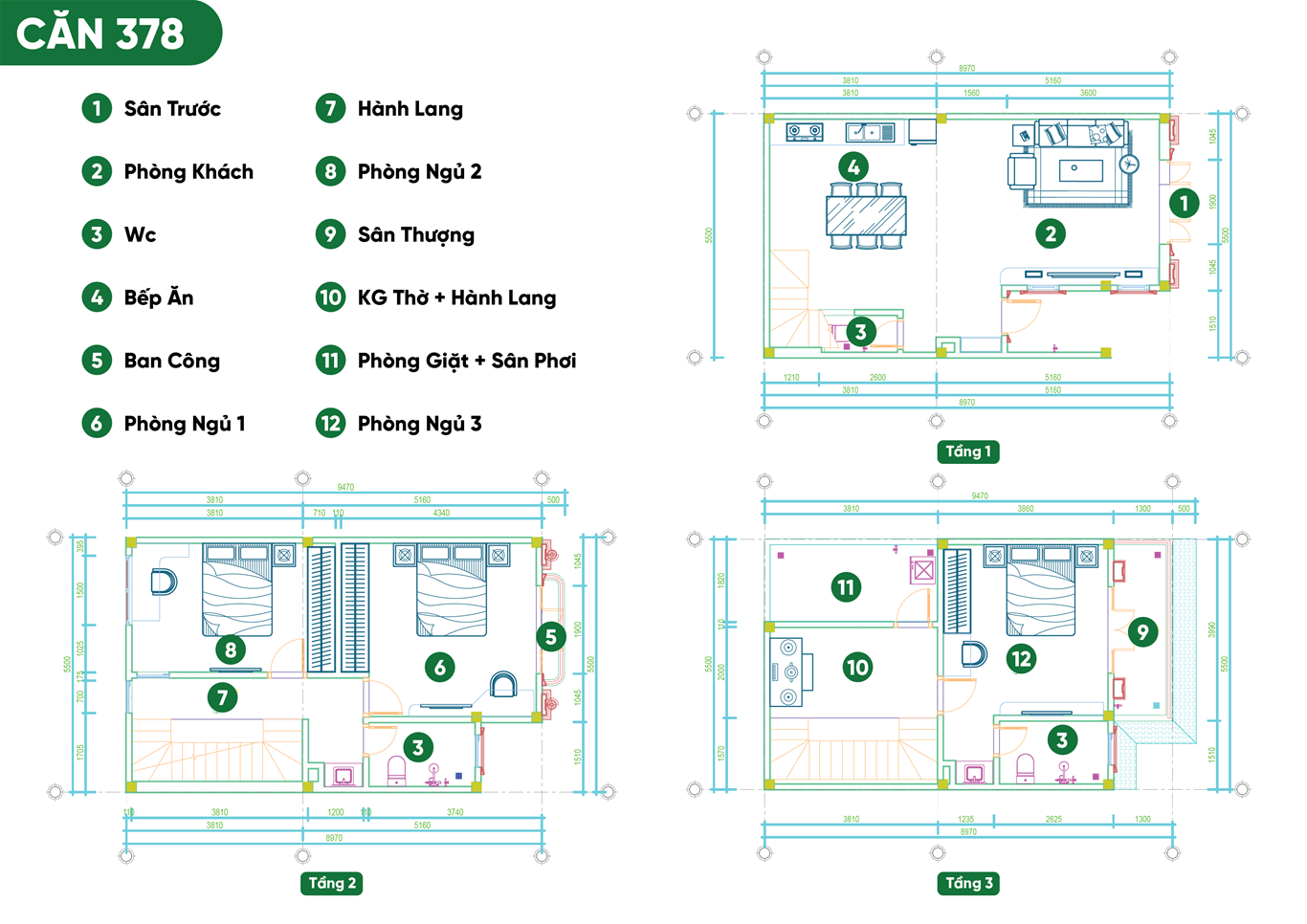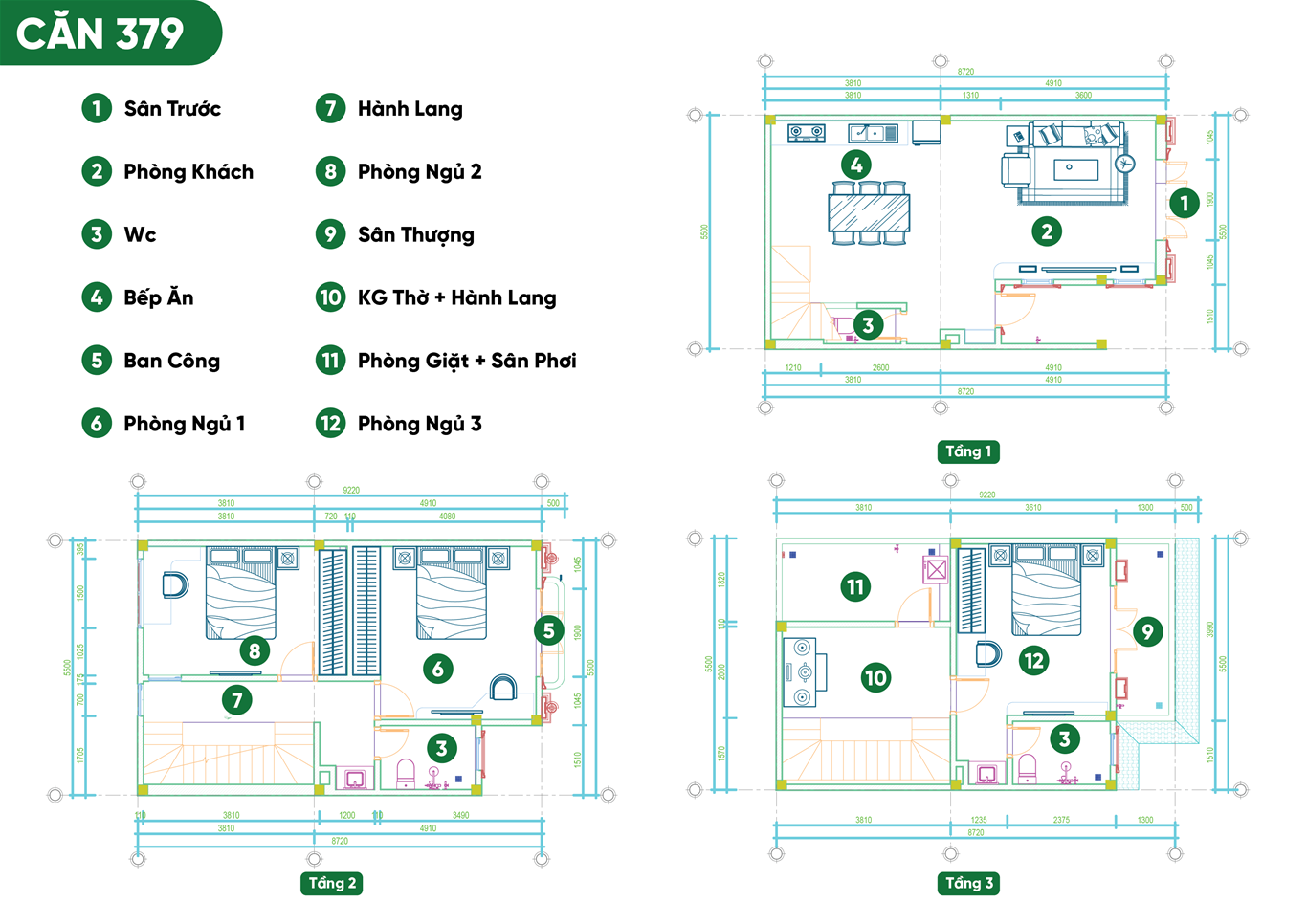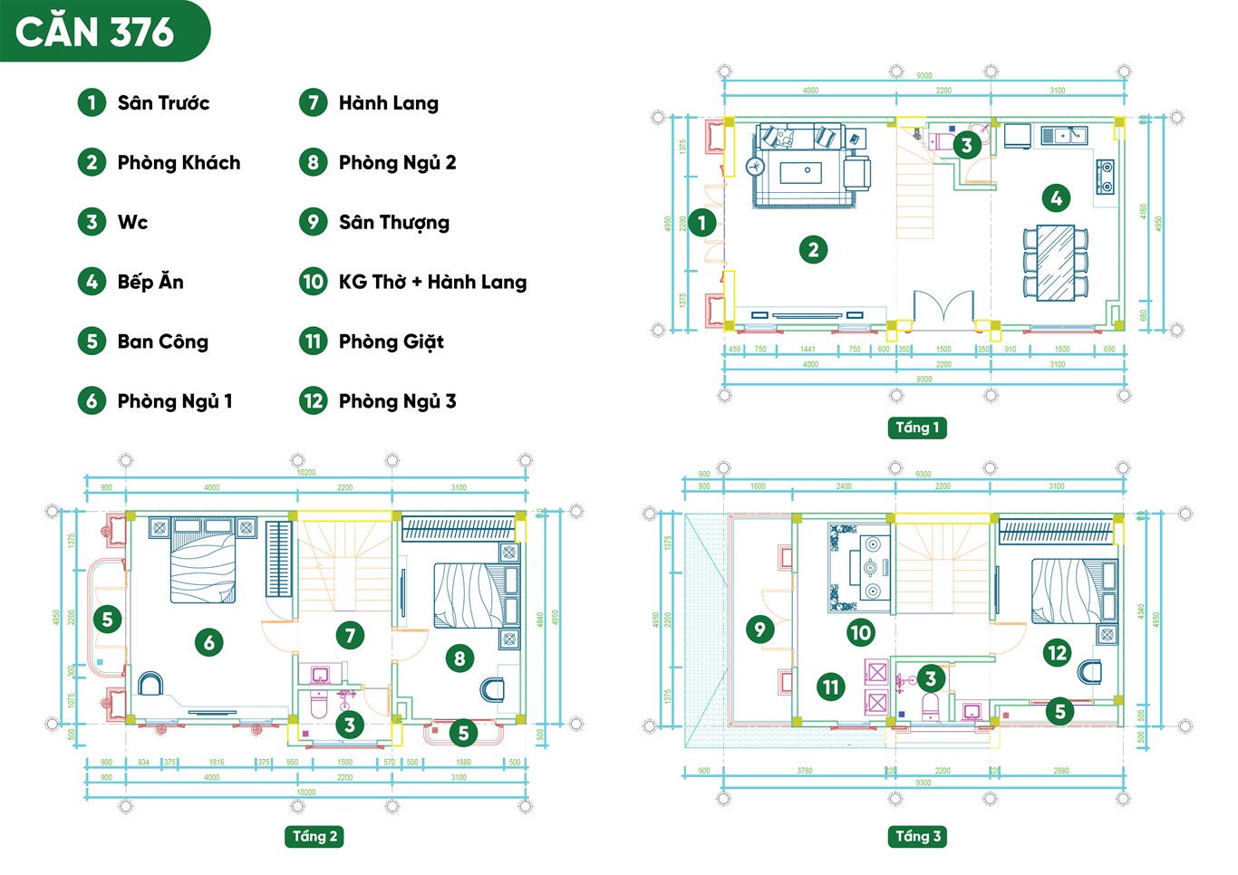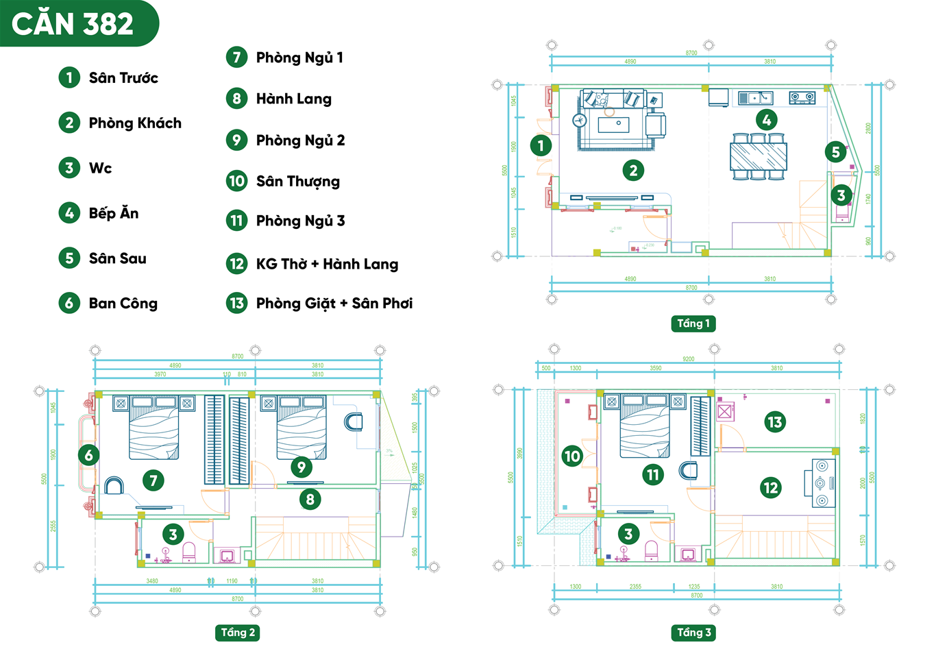 • CÔNG NĂNG: Phòng khách, phòng bếp, 3 phòng ngủ, 3 WC, phòng thờ, sân thượng, ban công, giếng trời.