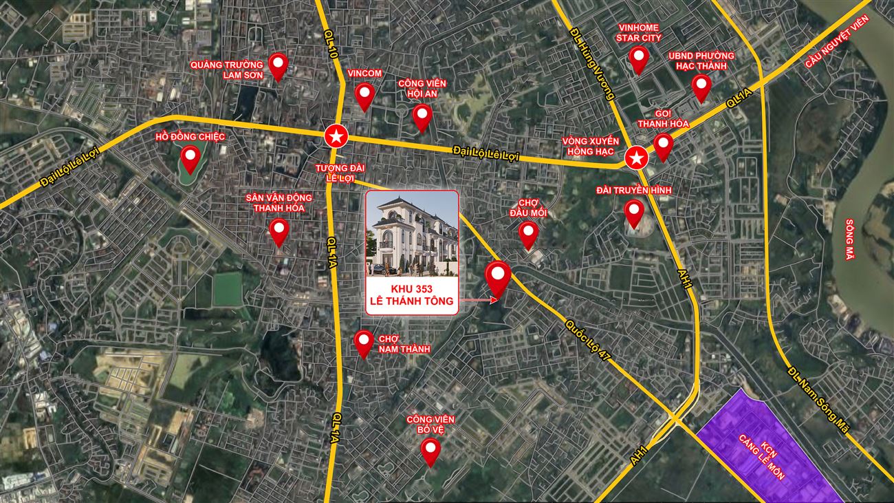 • VỊ TRÍ: Khu 15 – 03/353 Lê Thánh Tông, P. Hạc Thành, TP. Thanh Hóa