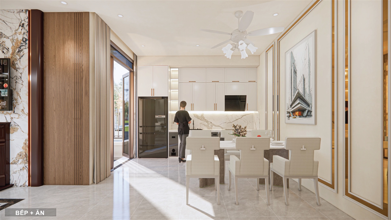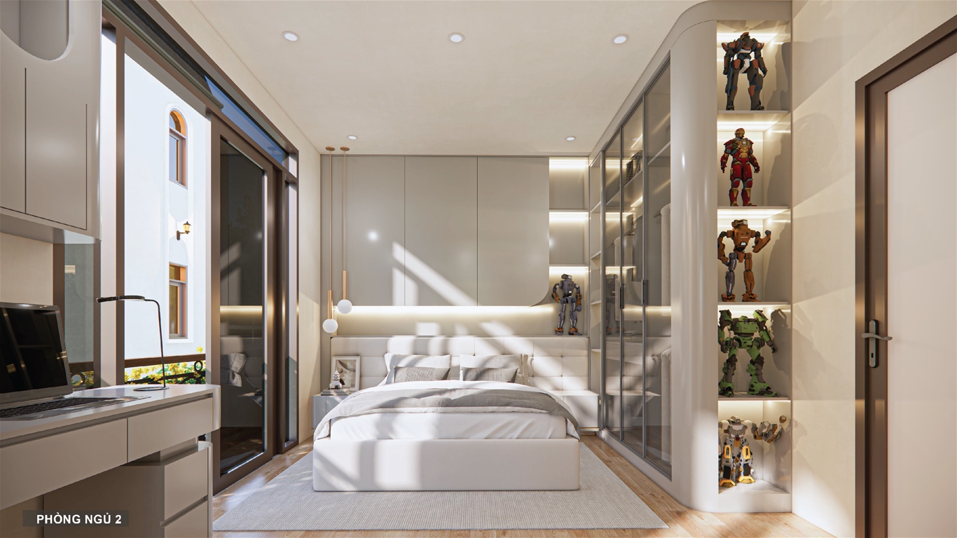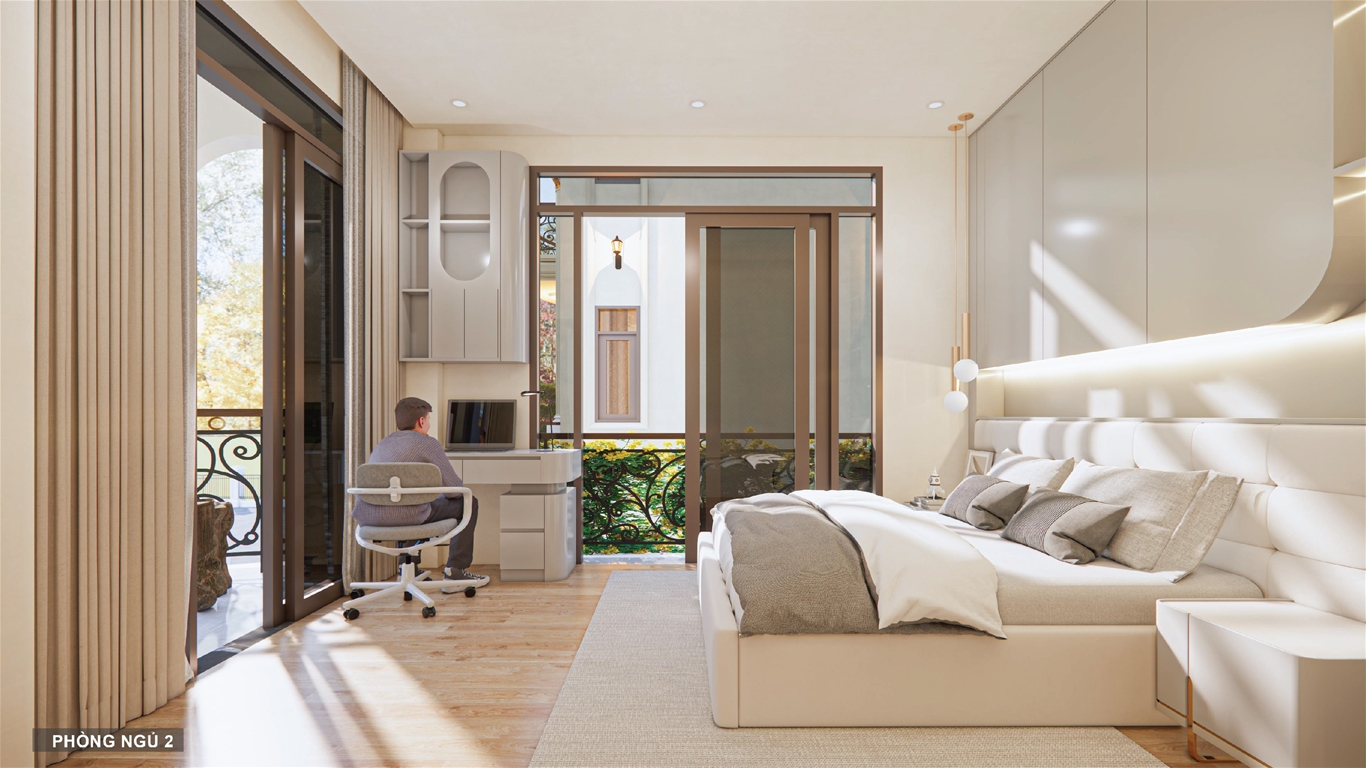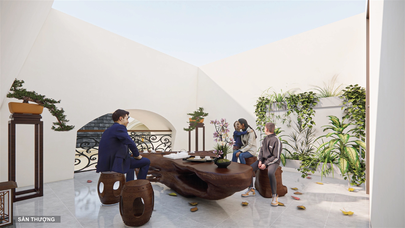 Công năng: Gara ô tô/ sân trước, phòng khách, bếp, 3-4 phòng ngủ, WC, ban công, phòng thờ, khu giặt phơi, tum chờ thang máy thủy lực, sân thượng.