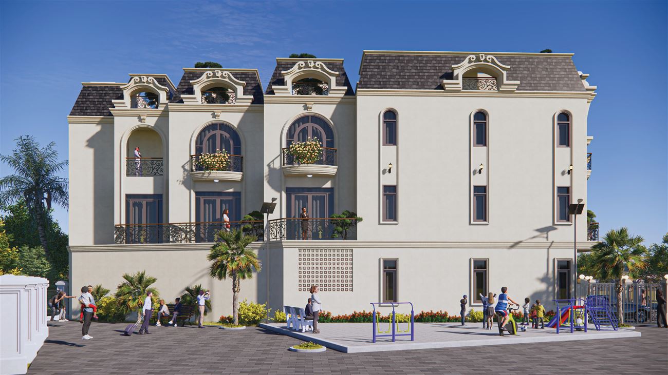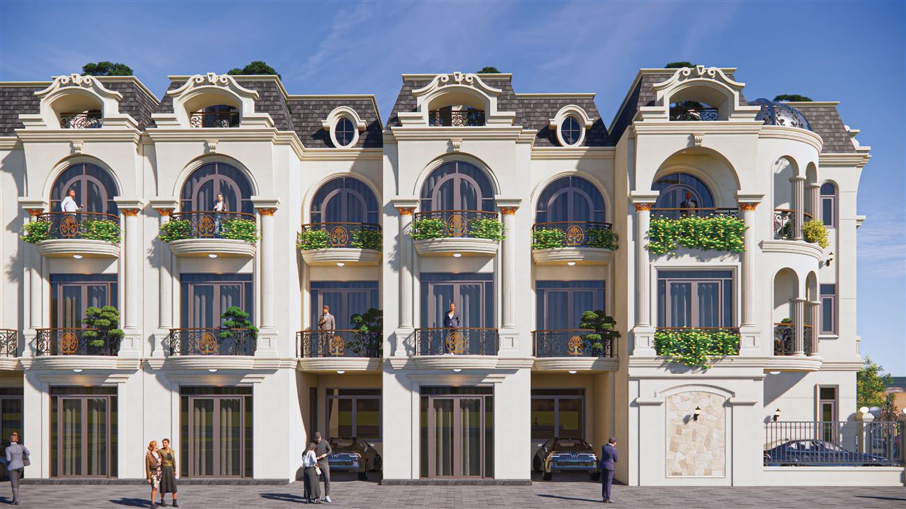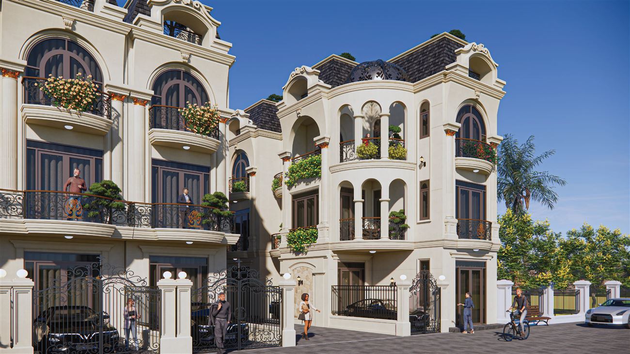 Quy mô: 10 căn nhà phố xây mới – 3 tầng + tum mái (thiết kế ồng bộ)